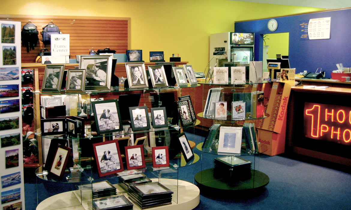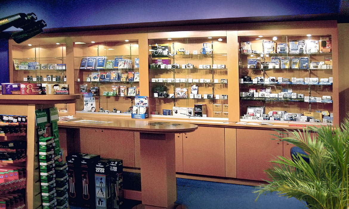 Located in a shopping mall next to a cruise ship terminal and a large downtown office population, this store used vivid colours as a visual cue for its sales and specialty service. Strong colours and inexpensive materials were an effective solution to a limited budget. Display shelving were prepared from industrial grade materials, finished with a light stain, exposing its intrinsic texture, to complement the store's colour scheme and simple finishes.