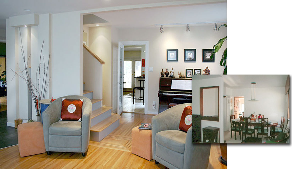 The house was renovated to facilitate natural air circulation with openings through floors and walls– vertical wall slots and floor gaps that enabled stale air to exhaust through a central stairwell skylight. On a warm day, the opening of the skylight helps cool the homes' spaces through the system of floor gaps and wall slot openings. This free flow of air keeps windows free of condensation– discouraging problems associated with fungus, mildew, and mould.