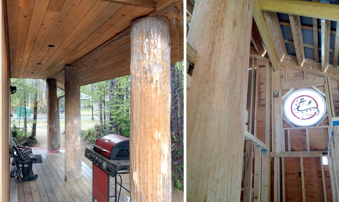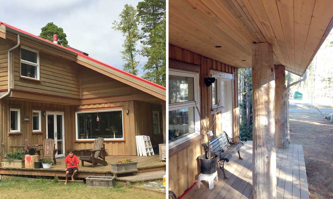 The home was designed with pitched roofs and overhangs to protect and to shed off the westcoast rains. The main roof faced the south/ south-west for solar panel placements. Also designed were provisions for rainwater collection and a natural ventilation plan to encourage air movement (helps mitigate moisture, mould, and mildew issues). National Geographic magazine prepared an article on the Nuu-chah-nulth conservation economy and profiled this home.